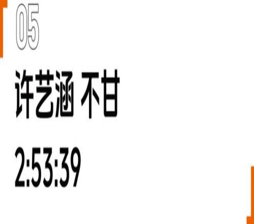 最后轉彎朝向沖線拱門時,馬洪利才發(fā)現,自己打開了240。盡管成績距離國家健將只差22秒,身邊的跑友也為馬洪利這22秒之差而遺憾,但她不覺得,“本身我就沒按240來準備這場比賽,能收獲大幅PB,并得到北馬國內第6,已經是非常意外的收獲了。”