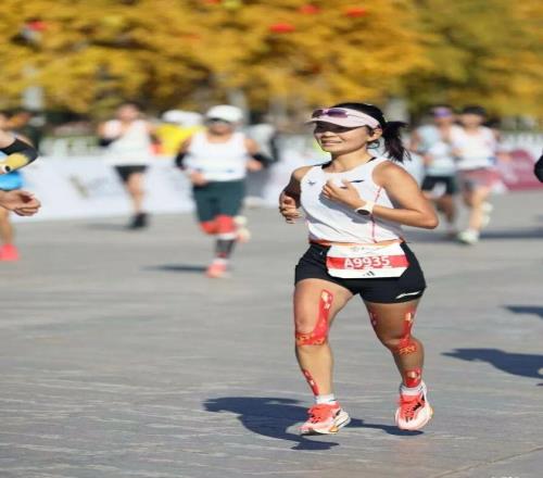 這是重慶跑者賈亞亞的第二次北馬之行。賽前半個月的傷病爆發(fā),讓她只能將此次的比賽目標調整為安全完賽。她總結自己整場比賽的體感是——挺輕松,但是臀部受傷處的痛感還是一直伴隨著全程,尤其跑到后面的時候,拉扯起來的痛感更加明顯。在33公里的時候,她還經歷了補給完后,能量膠帶來的胃部不適,“有點卡住,挺想吐。”