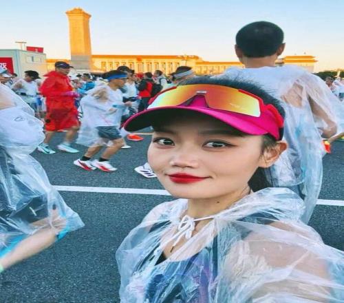“我第一次參加有這么多厲害的選手的比賽,而且能夠在天安門廣場和四萬人一起起跑,真的還蠻震撼的。”30公里后,張妮的大腿明顯感受到了僵硬,但畢竟是她向往已久的北馬,絕不能退賽。于是在路旁加油鼓勵聲中,她咬牙堅持下來。張妮說,臨近終點時的1公里,自己加速到了343的配速,是毛爺爺給了她力量。